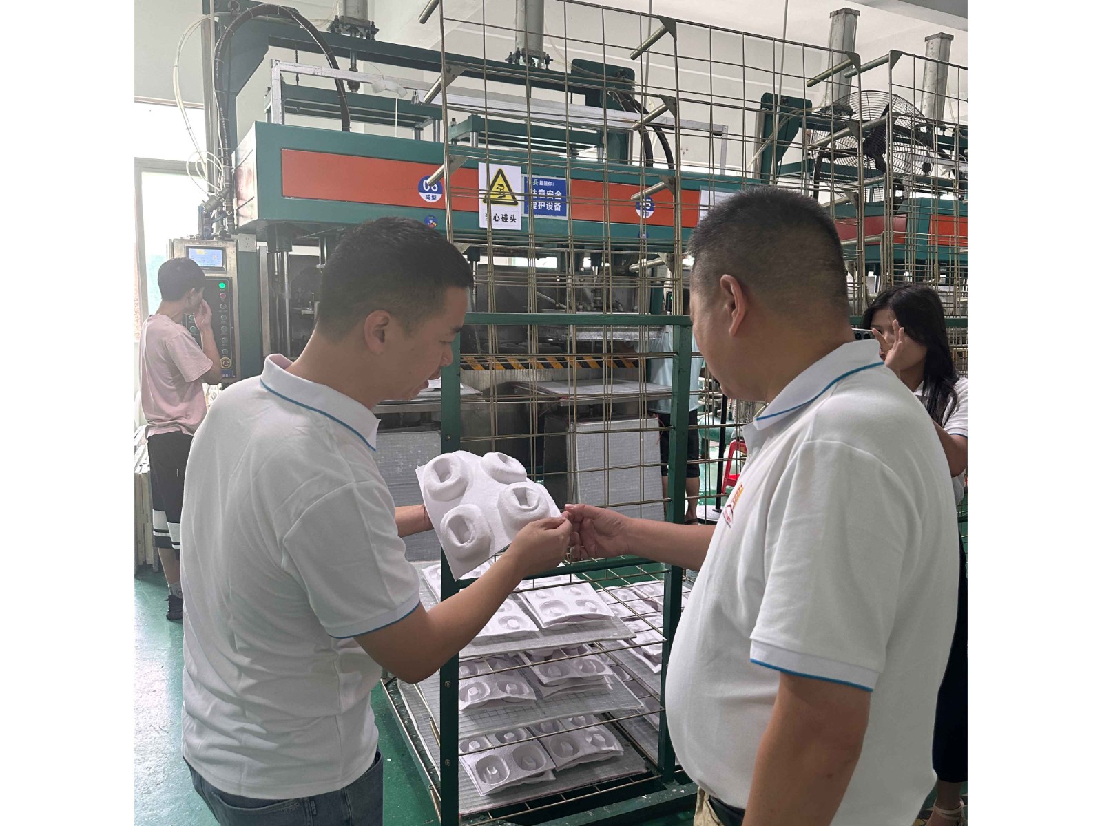 先后意昂体育3 一起参观了模具制造、打浆、水模成型、热压整形、切边验货等一系列生产流程,收获了大家的一致认可,并对金美纸塑在环保领域的发展态势,予以了充分的肯定,也表示将始终关心和支持我司的工作。